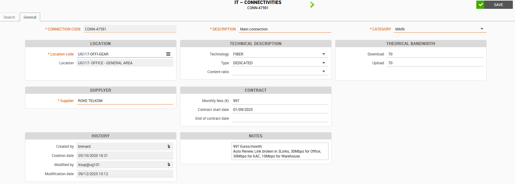 - Complete the category to specify whether it is the primary connection or used only as a backup.