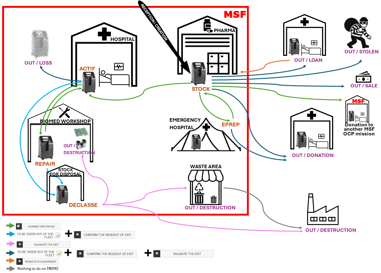 Equipment that is no longer the property of or under the responsibility of MSF, or that is no longer identifiable as equipment. It is no longer physically located on MSF premises. |