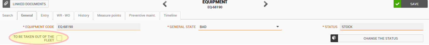 - Tick the "TO BE TAKEN OUT OF THE FLEET" box.