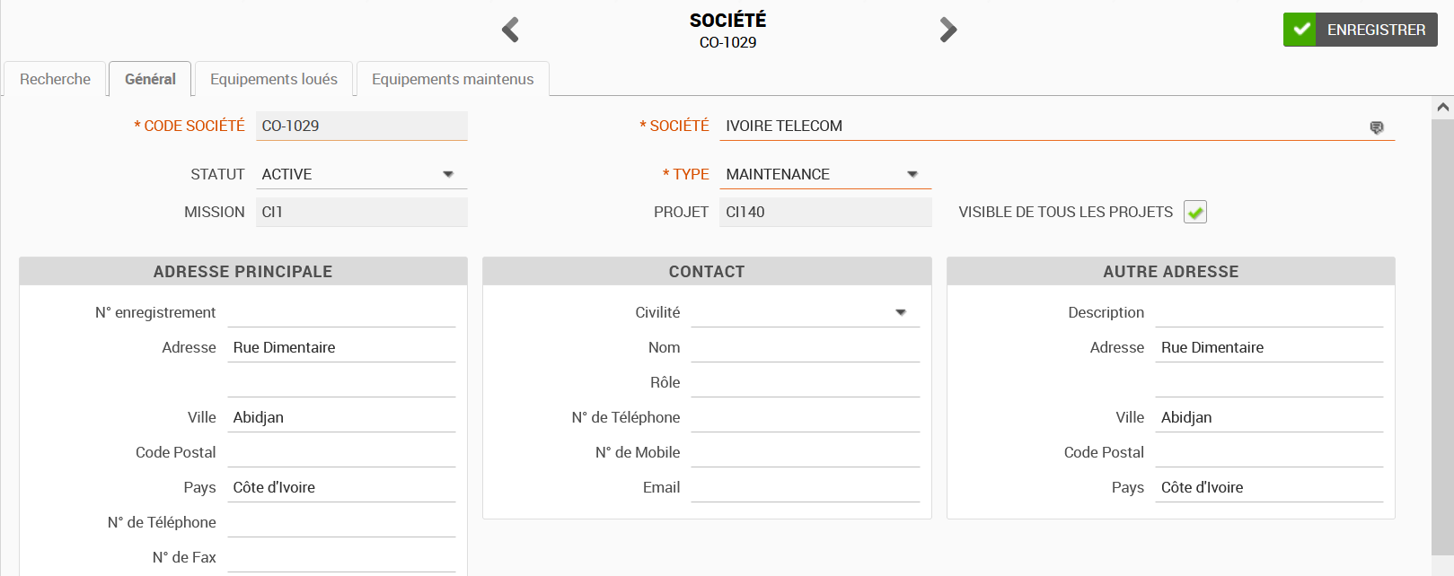 - Remplissez les autres champs et cliquez sur ENREGISTER