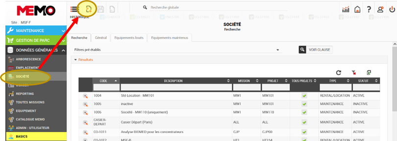 - Cliquez sur Module Données générales et cliquez sur Société. Il affichera toutes les sociétés dans votre mission / projet.