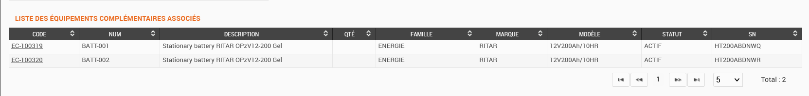 - Allez dans l'application EQUIPEMENTS COMPLEMTAIRES dans le module GESTION DE PARC