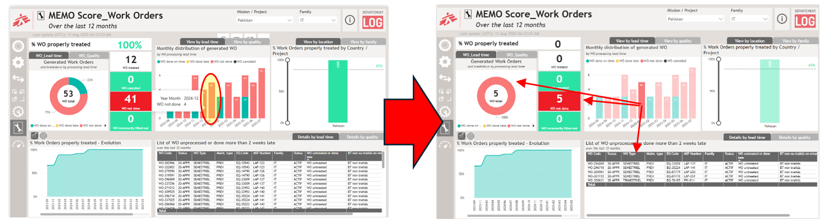 Vous pouvez copier les graphiques pour les intégrer directement dans vos rapports de SITREP, Annuel, rapport de fin de mission... en cliquant sur le bouton "copier en tant qu'image avec légende"